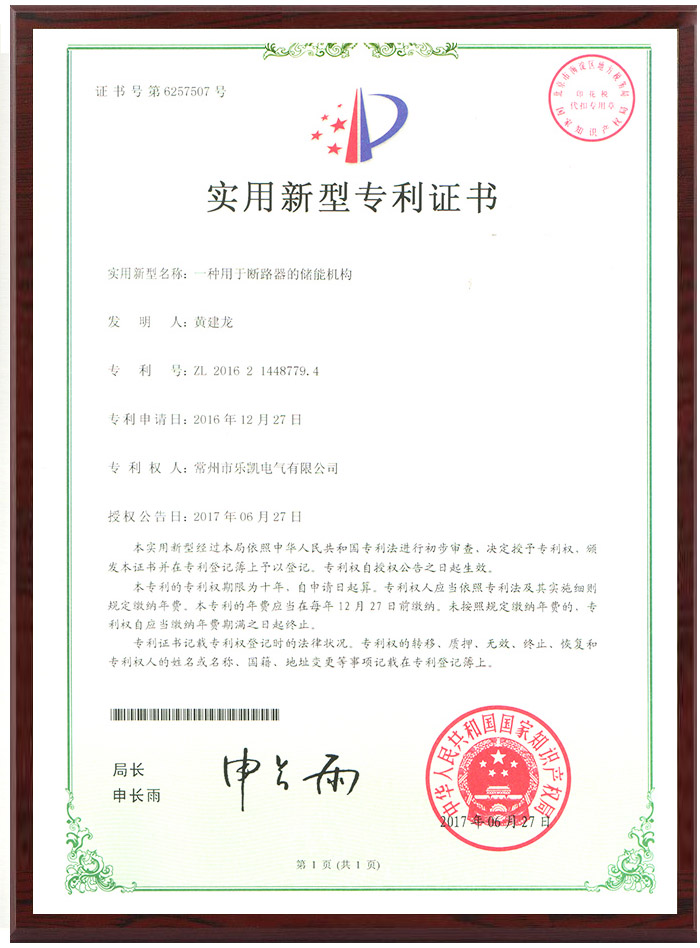 实用新型专利证书